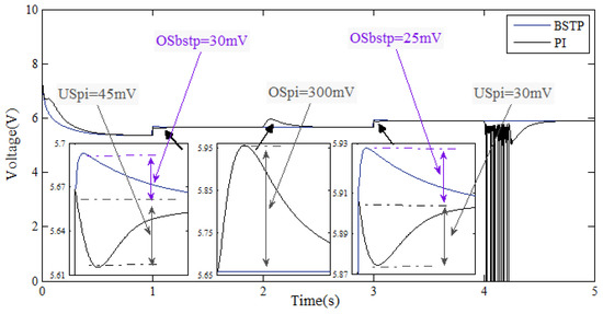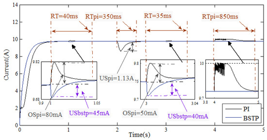 Although the PI controller is commonly used in a wide range of applications, several drawbacks such as the difficulties of finding out the constants and are causing a big issue [67,68,69,70]. Moreover, its sensibility dealing with the load variations has caused researchers to look for another controllers that can provide robustness against load variations. In this paper, the method used for determining the values of and is known as the “Ziegler–Nichols tuning method,” discovered and developed by J. G. Ziegler and N. B. Nichols. It is an online method that is usually used when there is a lack of knowledge of the model parameters [71]. In order to apply this method, three main steps should be accomplished.