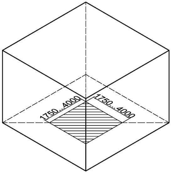 Regarding underfloor heating (UFH), we considered two different cases: a square heater in the centre of the floor, with varying side length (Figure 13), and a strip setup with fixed width as the floor and varying depth from the external wall (Figure 14). A nominal heat output of 50 W/m at a water-side temperature drop of K was used as input for the IDA ICE model, with the piping placed at 25 mm depth in screed. A 30 W/m K fluid-to-slab heat transfer coefficient and a supply temperature of 35 C were used.