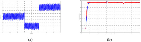 Figure 5 shows the different Simulink simulation results to the input with the system load superposed by ramp signal and step noise signal. As shown in Figure 5a, the speed response curves of the PMSM show that the proposed SMC can track the input more quickly and accurately. Simultaneously, the PMSM can effectively adjust the speed of the rotor to return to stable state according to a sudden load, and the proposed SMC can resume with less time and less speed error.