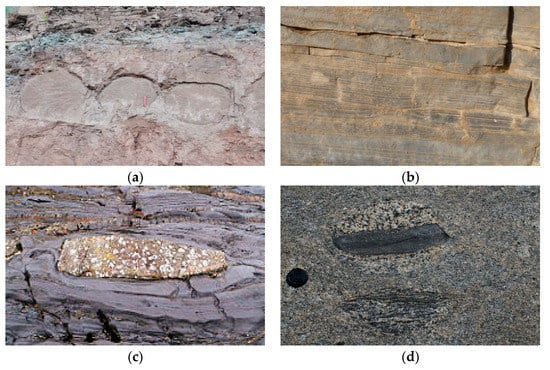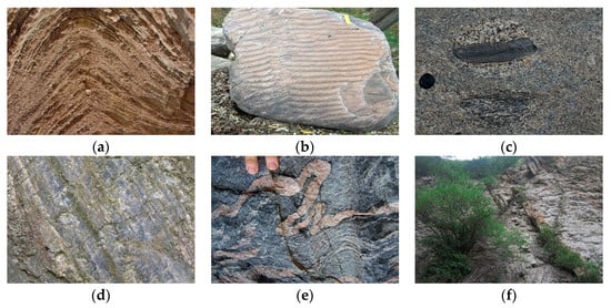 The primary objective of a geological survey is to identify geological structures in the field and, this is also important for project schedule management and safety guarantees. In construction, engineers search for the exposure of geological structures to the Earth’s surface in field surveys, then explore geological structures that partly extend below the Earth’s surface with boreholes, adits, etc. Some geological structures should be given special attention because of their poor properties. Anticline and ptygmatic folds weather easily; xenoliths, boudins, and dikes usually have low strength at the contact surface because they contain rocks with different properties; ripple marks, mudcracks, and concretion always indicate there is an ancient river course; faults and scratches mean broken structures in engineering; basalt columns have a low strength because of the columnar joints; a gneissose structure also has a low shear strength at the direction of schistosity. The geological structures have a significant influence on project site selection, general layout and schedule management, which is also crucial to construction quality. The identification of geological structures can help engineers make a better choice in construction. On the other hand, geological structures, such as faults [] and folds [], are connected to hazards. Vasu and Lee [] applied an extreme learning machine to build the landslide susceptibility model with 13 selected features (including geological structure features). The performance of prediction was better, with the accuracy of 89.45%. Dickson and Perry [] explored three machine learning methods, namely maximum entropy models, classification and regression trees and boosted regression trees, to make identification of coastal cliff landslide control based on geological structure parameters. The final result showed a high performance with 85% accuracy. The researches proved geological structures were connected to geologic hazard prediction and prevention. However, the machine learning methods are applied in structured data. For unstructured data, such as image, audio, text, we need to extract the features of the unstructured data and input them to train machine learning models. In the process of data type transformation, other algorithms are going to be selected.