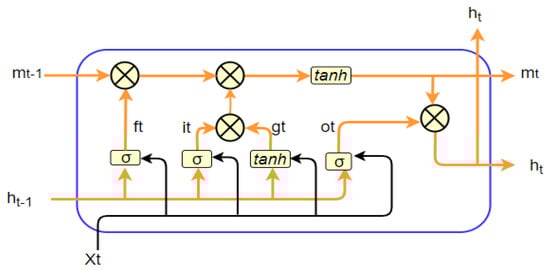 where ,  and  designate the input, forget and output gates respectively. These gates collectively determine how to update the current memory cell  and the current hidden state . The parameter  is used to indicate the memory dimension in the LSTM were all the vectors in the defined architecture has the same dimension.  is an element-wise sigmoid function with an output range between . Subsequently,  indicates the hyperbolic tangent function that has an output range between  and ⊙ denotes the element-wise multiplication function and ,  and ,  are considered as network parameters. The function  is set to have a better understanding of mechanisms involved in the architecture and to control distinct type of information that is needed to be discarded from old memory cell. In addition, the use of  to control in the amount of information that is stored in the current memory cell and  to control the parameters required to be provided as an output based on the memory cell . LSTM was designed to deal with vanishing and exploding gradient problem when training traditional recurrent neural network. LSTM structure is illustrated in Figure 3.