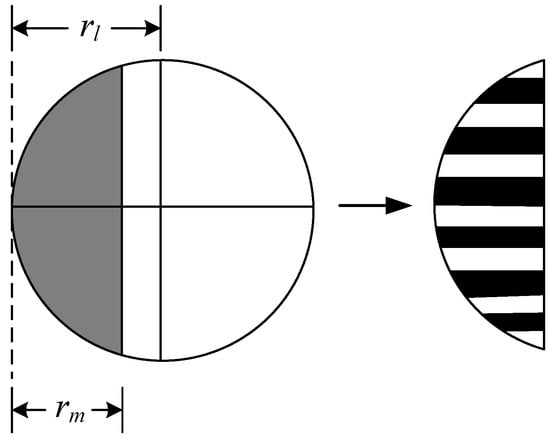 For the OCC system, there is a minimum number of strips below which the data bits cannot be extracted. The full LED does not need to appear inside the image sensor. The minimum area that should appear depends on the LED size. As shown in Figure 6, the minimum area and the corresponding number of strips considering a circular LED can be expressed as