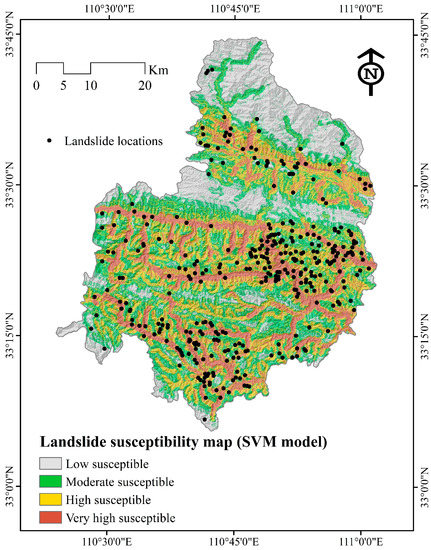 Landslide susceptibility map using the support vector machines (SVM) model.
