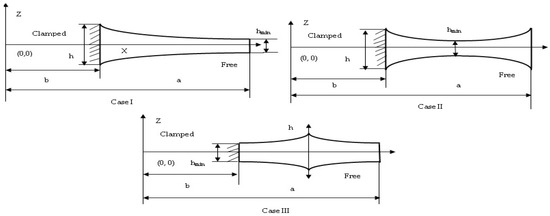 The Case II plate (parabolically decreasing-increasing) and Case III plate (parabolically increasing-decreasing) thickness variation of (Figure 2) are given by the equations: