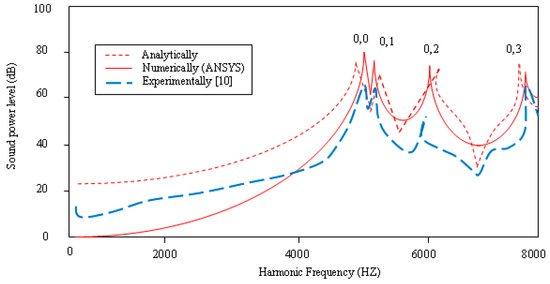 3.1. Validation of Natural Frequency Parameter and Acoustic Power Calculation