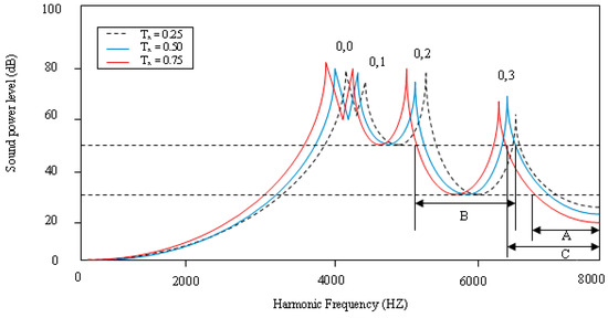 where, the corresponding acoustic wave number of the (m, n)th mode is represented by , s and o in Equations (10) and (11) represent the source side and the opposite to the source side.