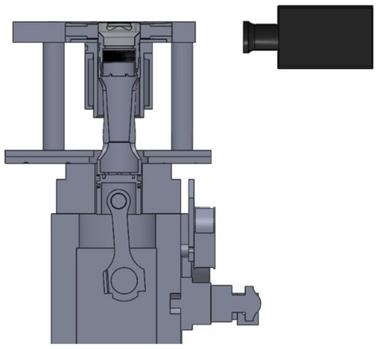 A high speed camera, Photron SA-X2, was used to record the piston positions in relation to the cylinder head surface. The camera lens was a ZEISS Makro Plana with a 50 mm focal length. The frame rate used was 21,000 fps, with a resolution of 588 × 588 pixels.