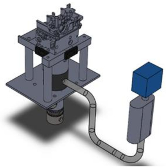 Another important parameter to be considered is the blow-by leakage. Normally the blow-by in most engines is small [24] and is usually not taken into account during the thermodynamic characterizations [15]. Nevertheless, blow-by in optical engines can be higher than that in metal engines due to crevices as well as piston rings, which are composed of a synthetic material. To measure mbb, an AVL 442 blow-by meter was installed in the optical engine. As the equipment is made to be used in metallic engines, an adaptation was necessary. A cylinder made from PVC, which is detailed in Figure 6, was perfectly fitted between the cylinder line and the bottom flange with only one access to the blow-by meter. The cylinder was attached to the seals perfectly to avoid any leakage. The measured quantity of blow-by in these tests was found to be lower than the detection threshold of the equipment. In this way, for the calculations in the model, the blow-by was considered zero.