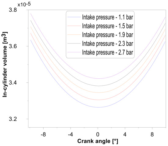 - The impact of mechanical deformation on the instantaneous volume trace was investigated by including the mechanical deformation in the volume expression. The difference between the minimum volume calculation with and without deformation was 8% at 2.7 bar of intake pressure.