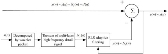 Noise reduction principle for a combination of the wavelet packet and the Recursive Least Squares (RLS) adaptive filter.