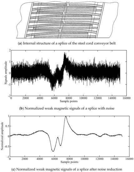 - Mao, Q.; Ma, H.; Zhang, X. Steel Cord Conveyor Belt Defect signal Noise Reduction Method Based on a Combination of Wavelet Packet and RLS Adaptive Filtering. In Proceedings of the 2016 International Symposium on Computer, Consumer and Control (IS3C), Xi’an, China, 4–6 July 2016. [Google Scholar]