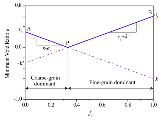 where ec is the void ratio of pure coarse-grained particles, ef is the void ratio of pure fine-grained particles, and are material constants.