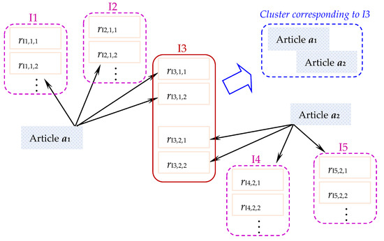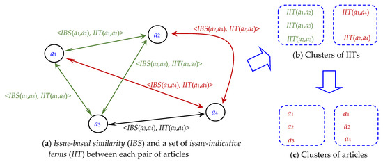 For two articles, a1 and a2, IIT simply includes those candidate terms that have top-10 IIT strengths, as defined in Equation (14). These terms aim at indicating the issue discussed in both a1 and a2.