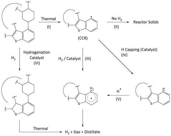 - Clark, P.D.; Hyne, J.B.; Tyrer, J.D. Some chemistry of organosulphur compound types occurring in heavy oil sands: 2. Influence of pH on the high temperature hydrolysis of tetrahydrothiophene and thiophene. Fuel 1984, 63, 125–128. [Google Scholar] [CrossRef]