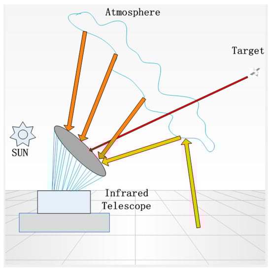 The HOT works at a distance farther than 8000 km above the Earth, where the environment around the target is at absolute zero temperature; therefore, the target can be regarded as a point source black-body from the observer, the schematic of target model is shown in Figure 1.