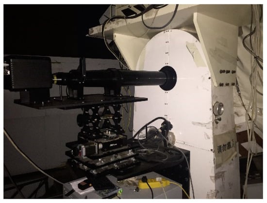 An infrared-K band photoelectric system was assembled to verify this model, and a few emblematical objects were observed by this system. The scene of the experiment is shown in Figure 6. The main mirror of photoelectric system was too large, no equipment or light source in the laboratory could match it. So, the moon was chosen as an ideal far-distance light source to set up the optical path. On a clear and cloudless night, the infrared detector and optical system were focused with on moon source. The observed picture of the moon shows that the imaging quality of this whole system is quite excellent.