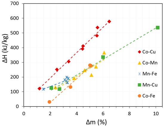 - André, L.; Abanades, S.; Cassayre, L. Experimental Investigation of Co–Cu, Mn–Co, and Mn–Cu Redox Materials Applied to Solar Thermochemical Energy Storage. ACS Appl. Energy Mater. 2018, 1, 3385–3395. [Google Scholar] [CrossRef]