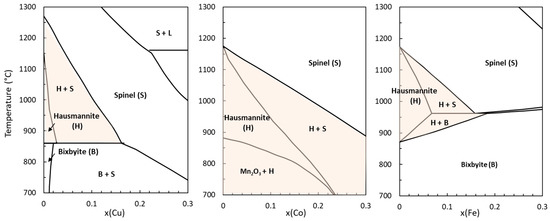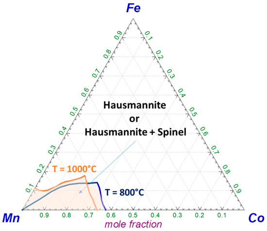 - Pashkova, E.V.; Novosadvoa, E.B.; Chalyi, V.P.; Antishko, A.N. Phase Diagram of the Manganese, Iron, and Cobalt oxides. Ukr. Chem. J. 1987, 53, 26–29. [Google Scholar]