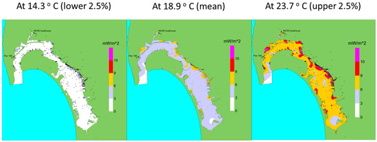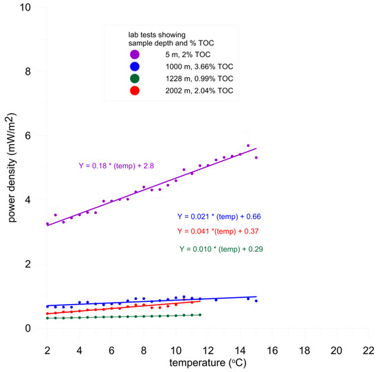 - Near-bottom water temperatures off Texas and South Korea warm ~10 °C seasonally from February to August. This temperature increase is predicted to increase MFC power densities by 1 to 2 mW/m2.