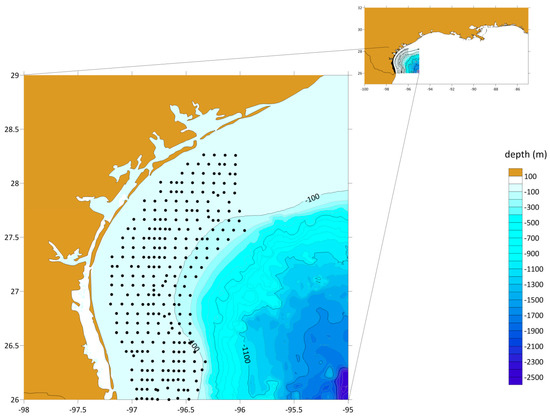 - NOAA BLM/OCS South Texas Outer Continental Shelf (STOCS) Project Sediment Data. Available online: https://www.ngdc.noaa.gov/docucomp/page?xml=NOAA/NESDIS/NGDC/MGG/Geology/iso/xml/G02888.xml&view=getDataView&header=none (accessed on 1 October 2018).