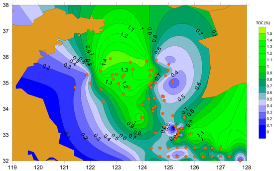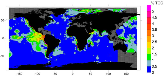 - Seiter, K.; Hensen, C.; Schröter, J.; Zabel, M. Organic carbon content in surface sediments—Defining regional provinces. Deep Sea Res. Part I 2004, 51, 2001–2026. [Google Scholar] [CrossRef]