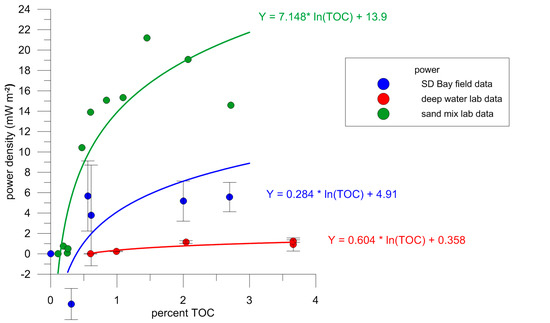 - Observations connected with this study suggest that testing MFCs with sediments collected at depth (≥1000 m) and not pressurized during retrieval or in the laboratory does not unduly impact power density estimates.