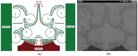 - Chu, J.; Zhang, R.; Chen, Z. A novel SU-8 electrothermal microgripper based on the type synthesis of the kinematic chain method and the stiffness matrix method. J. Micromech. Microeng. 2011, 21, 054030. [Google Scholar] [CrossRef]