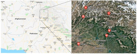 From the tunneling viewpoint, the Himalayas pose the most challenging ground conditions in the world [29]. This mountain range is located in the north of the subcontinent and has great potential for hydropower generation; to harness this energy, deep tunneling here is the most tough job [30]. Along with these hydropower tunnels (completed, under construction, and planned), a number of road tunnels have also been completed recently in the northern part of Pakistan.