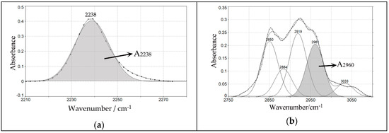 Characteristic absorption peak area at: (a) 2238 cm−1; (b) 2960 cm−1.