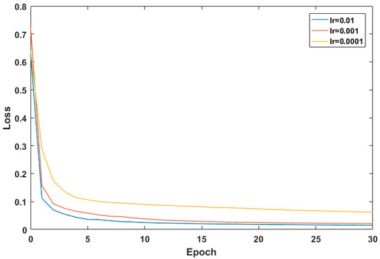 In our study, the FCN8s’ structure did not include the batch normalization layer. We tested some learning rates (0.01, 0.001, 0.0001) during FCN8s’ training and found that the required accuracy could be obtained when the learning rate was 0.001, but the cost was a longer training period than Segnet. The training parameters of FCN8s and Segnet are shown in Table 4. The training performance of FCN8s is shown in Figure 10. When epoch reached 10, the training loss was close to 0.06 and tended to be stable.
