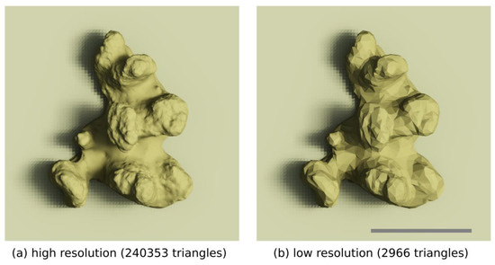 (a) High-resolution model versus; (b) low-resolution model of coral 35, scale bar is 5 cm.
