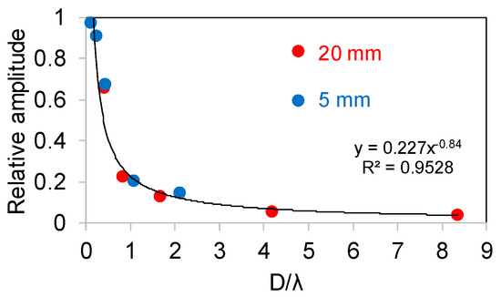 Relative amplitude vs. sensor size over wavelength parameter (D/λ).