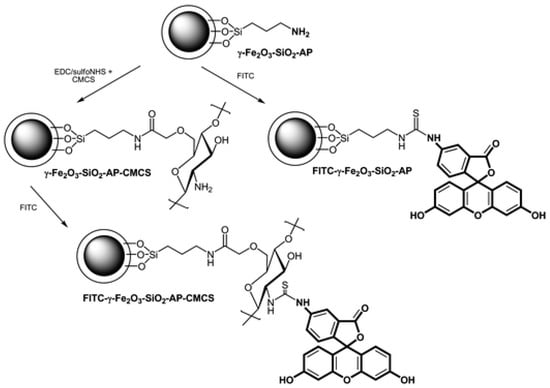 Labelling of γ-Fe2O3–SiO2-AP and γ-Fe2O3–SiO2-AP–CMCS nanoparticles with FITC. Adapted from ref. [19].