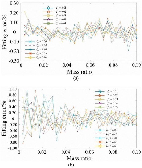 Comparison of fitting error of fitting formulas. (a) Comparison of optimum frequency ratio; (b) Comparison of optimum damping ratio.