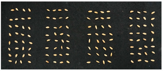 Hyperspectral imaging is a technique integrating visible/near-infrared spectroscopy and imaging to acquire spectral and spatial information of the samples simultaneously. A hyperspectral image can be defined as a data cube of shape , where (width) and (height) denote the spatial resolution and b denotes the number of spectral bands. From the perspective of imaging, there is an image of size for each spectral band. From the perspective of spectroscopy, there is a spectrum of length for each spatial pixel. Compared with non-imaging spectroscopy, it is possible to obtain spectra of multiple samples in one single scan using a hyperspectral imaging system. There are hyperspectral imaging systems for different spectral ranges, and identification of seed varieties has been conducted at different spectral ranges [3,4,5,6].