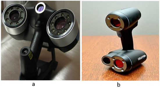 Handheld scanners (a) laser scanner; (b) white light scanner.