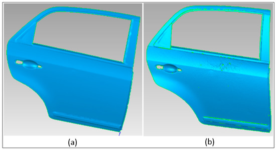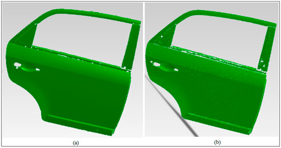 On the contrary, the data points acquired by using white light scanner possessed inconsistent edges or borders, greater noise, numerous gaps or holes, etc., as shown in Figure 9.