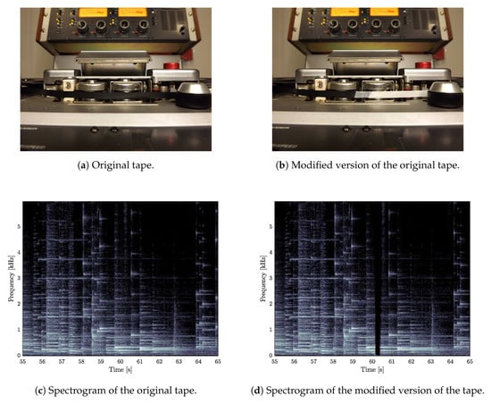 Tape music is a genre of electroacoustic music in which the artwork coincides with the tape on which the audio signal is recorded [6]. In some cases, the composer did not provide a score; hence, the tape could be considered the final product of the creative process. The carrier has therefore a prominent role and must be considered in the philological analysis [18,24]. The peculiarity of this type of analogue carrier is the possibility of editing the tape with several techniques. The main ones are introduced in [25], where the described techniques vary from straight recording to superimposition. Some of the main alterations considered in this paper are presented below.