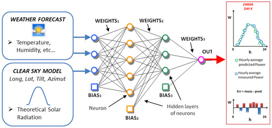 - Dolara, A.; Grimaccia, F.; Leva, S.; Mussetta, M.; Ogliari, E. A Physical Hybrid Artificial Neural Network for Short Term Forecasting of PV Plant Power Output. Energies 2015, 8, 1138–1153. [Google Scholar] [CrossRef]