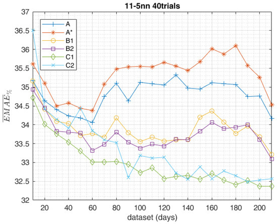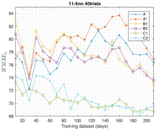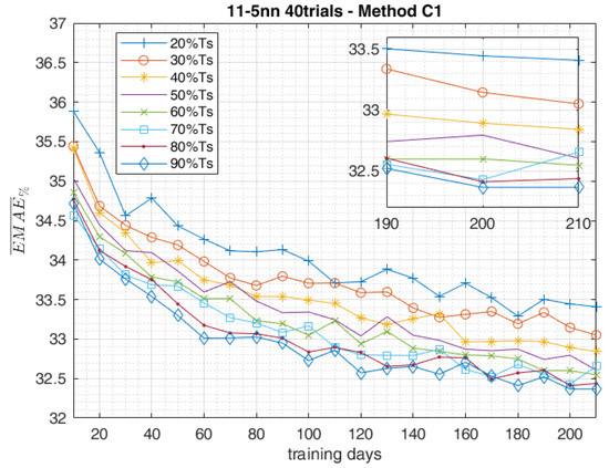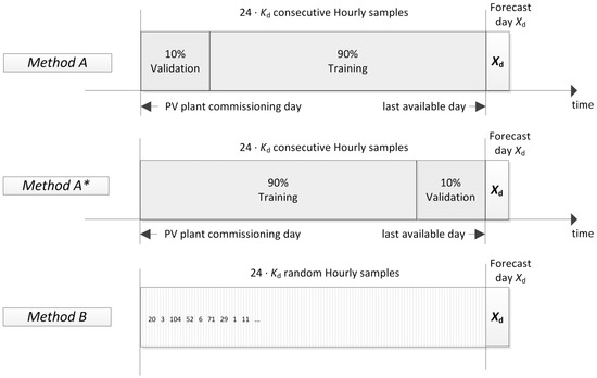- Method A* employs the same chronologically consecutive samples by grouping the 90% of the samples for the training set and the 10% of the samples which are closest to the forecast day for the validation set.