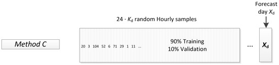 - Method A employs the same chronologically consecutive samples by grouping the 90% of the samples which are closest to the forecast day for the training set and the remaining 10% of the samples for the validation set.