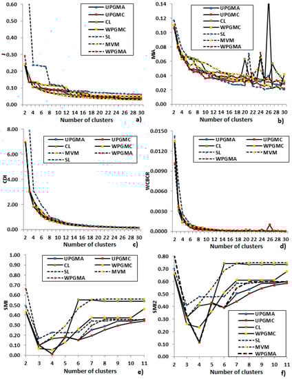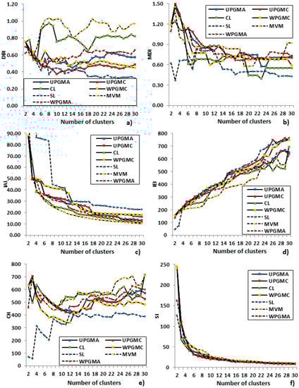 where , and are clusters that belong to the set Ck and , , and are coefficients of the distance metric function Table 1 presents the values of the coefficients that apply to each hierarchical algorithm. The parameters , and are the populations of clusters , and respectively [].
