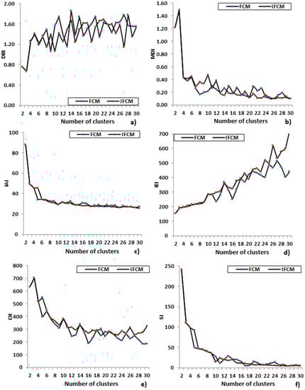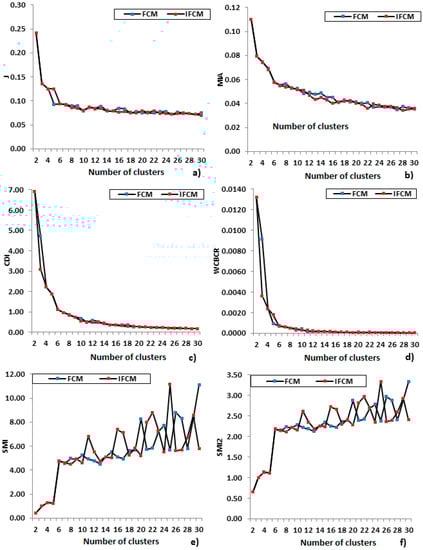 Fuzzy clustering is a generalization of crisp or hard clustering; the patterns (i.e., load curves) are distributed in all clusters with membership degrees that express partial membership. This fact provides flexibility in cluster structure and definition. The FCM algorithm is considered in [] to cluster a set of load curves of distribution feeders in Malaysia that cover the needs of various domestic, commercial and small size industries consumers. The FCM performance is checked by 2 validity indicators. The same data set and algorithm are examined in []. The data refer to aggregated feeder loads and thus, no large differences in the shapes of the load profiles of the different clusters are observed. After the initial execution of the FCM, the algorithm is executed again separately in the daily load curves of each cluster. This leads to the formation of an additional load profile per cluster, a fact that increases the final number of load profiles. In [], the FCM is checked with 7 clustering validity indicators. The algorithm is applied to the daily load curves that cover a period of a full year and correspond to the consumption of a city located in China. According to the paper’s findings, the value of the fuzziness parameter holds an important role in the FCM operation. This parameter is data specific, a fact that raise the need for several trial-and-error executions for its calibration. In [], the authors investigate the influence of the fuzziness parameter in the FCM clustering outcome via a trial and error approach.