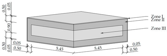 Zones of the used models and their geometry in the modeled quarter of the concrete block.
