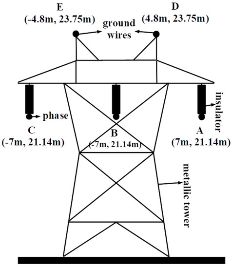 The transmission lines and the cable are modeled according to the Bergeron’s traveling wave method [27]. Figure 2 depicts the geometry of a typical tower of a 150 kV transmission line. The towers are modeled according to equation [28]: