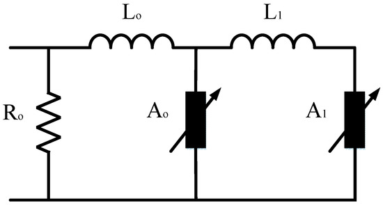 Surge arresters are modeled according to the Pinceti-Giannettoni model (Figure 3) [30,31], considering their electrical characteristics for the computation of the parameters of the equivalent circuit.