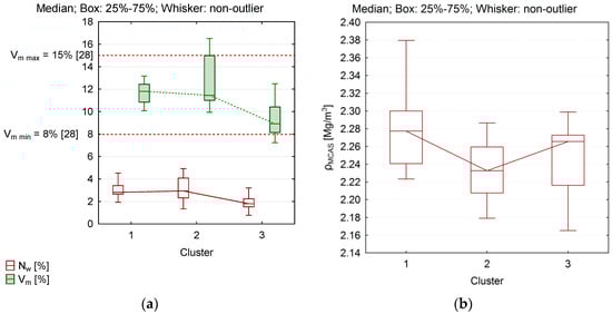 Grouping by (a) air void content (Vm), absorption (Nw); (b) density (ρMCAS).