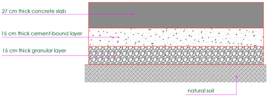 In conclusion, the concrete pavement of the circulatory roadway is composed of un-dowelled 27 cm thick concrete slabs cast in situ over a 15-cm thick cement bound layer and 15 cm thick granular layer. Figure 6 represents the pavement layers.