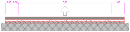 The 8.5 m wide section is composed of one 7 m wide circulating lane, and an outside 1.00 m wide shoulder, and an inside 0.50 m wide shoulder (Figure 7), as required by the Italian standards. The concrete layer will be 9.00 m wide, to avoid severe loading conditions transmitted by the long vehicles running close to the central island.