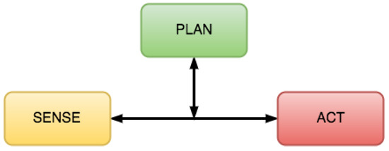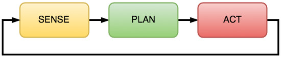 Starting from the 1970s, many roboticists in the field of AI explored biological and cognitive sciences in order to understand and replicate the different aspects of intelligence that animals use to live in an “open world,” overcoming the previous “closed world” assumption. They tried to develop robot control paradigms with a tighter link between perception and action, i.e., SENSE and ACT components, and discarded the PLAN component (Figure 3).